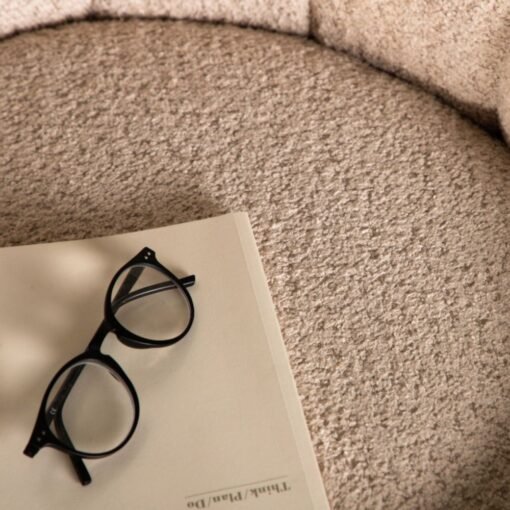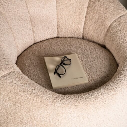 Le tissu bouclé offre non seulement un aspect visuel attrayant, mais il est également doux au toucher, créant une sensation de confort et de chaleur dès que vous vous installez dans le fauteuil. Sa teinte beige neutre s’harmonise facilement avec différents styles de décoration et apporte une ambiance chaleureuse à votre intérieur.