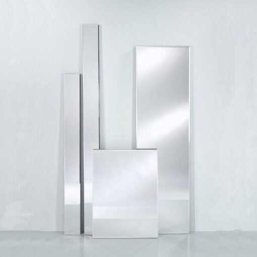 La conception réfléchie de ce miroir fin combine avec brio le verre miroir biseauté et un cadre en aluminium naturel anodisé, offrant ainsi une esthétique aussi bien contemporaine qu’intemporelle.