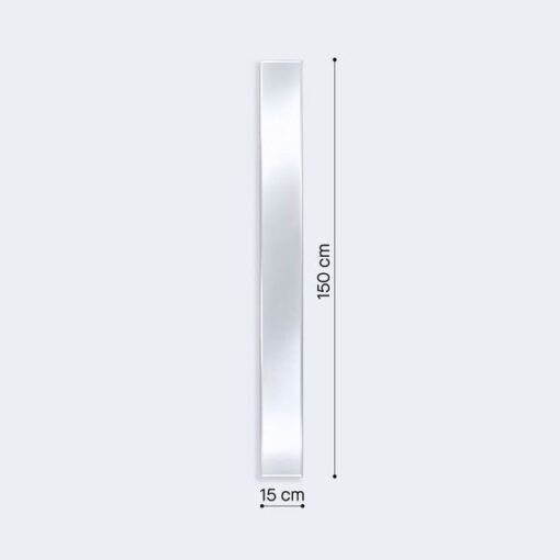 Haut : 150 cm | Larg : 15 cm | Epaisseur : 4 cm | Poids net : 5 kg – convient en miroir de salle de bain.