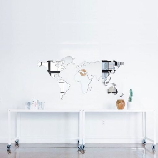 Ce miroir carte du monde est composé de 23 morceaux afin de représenter les iles et continents mais il reste néanmoins une représentation et un élément décoratif et non scientifique.
