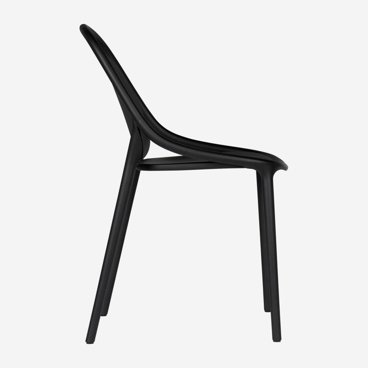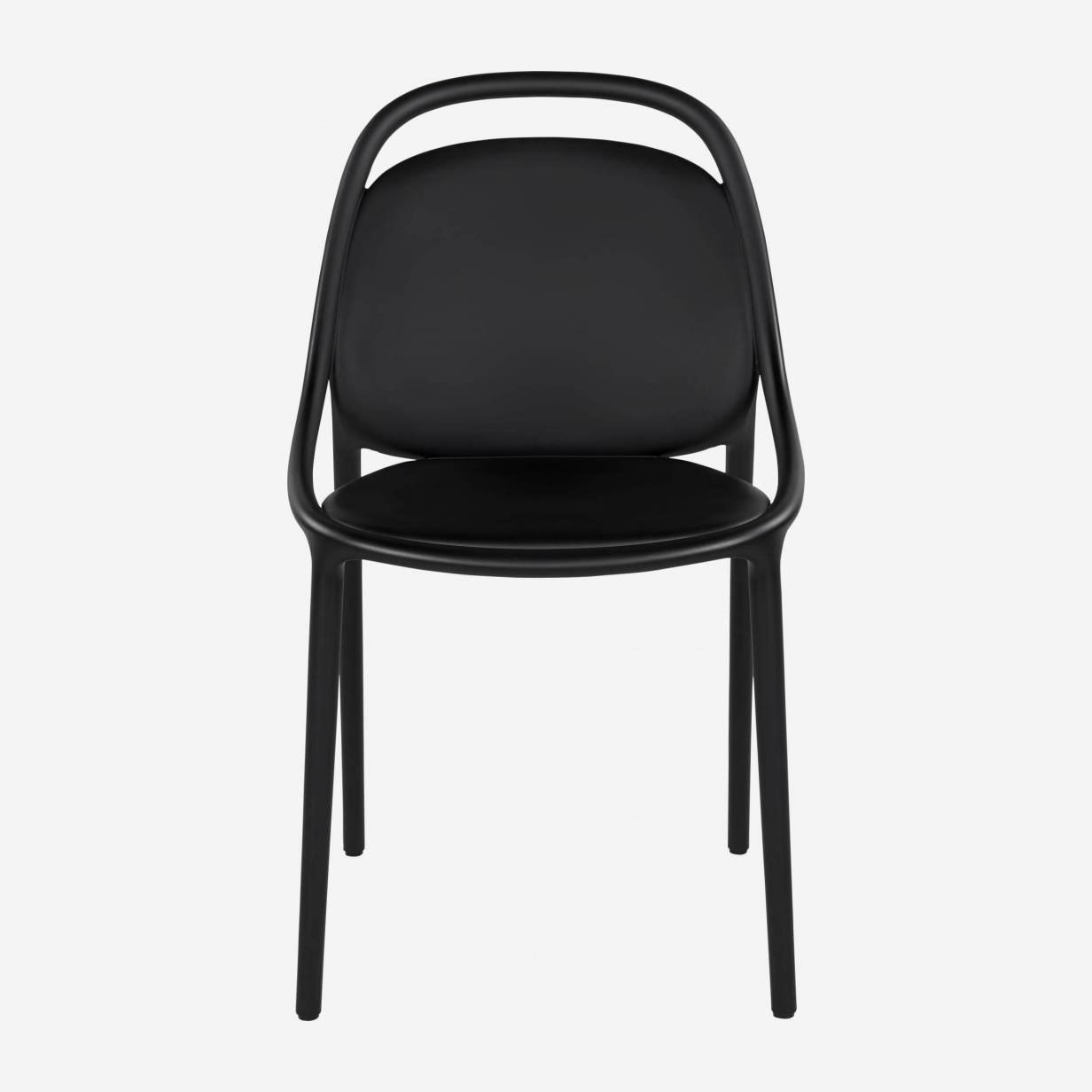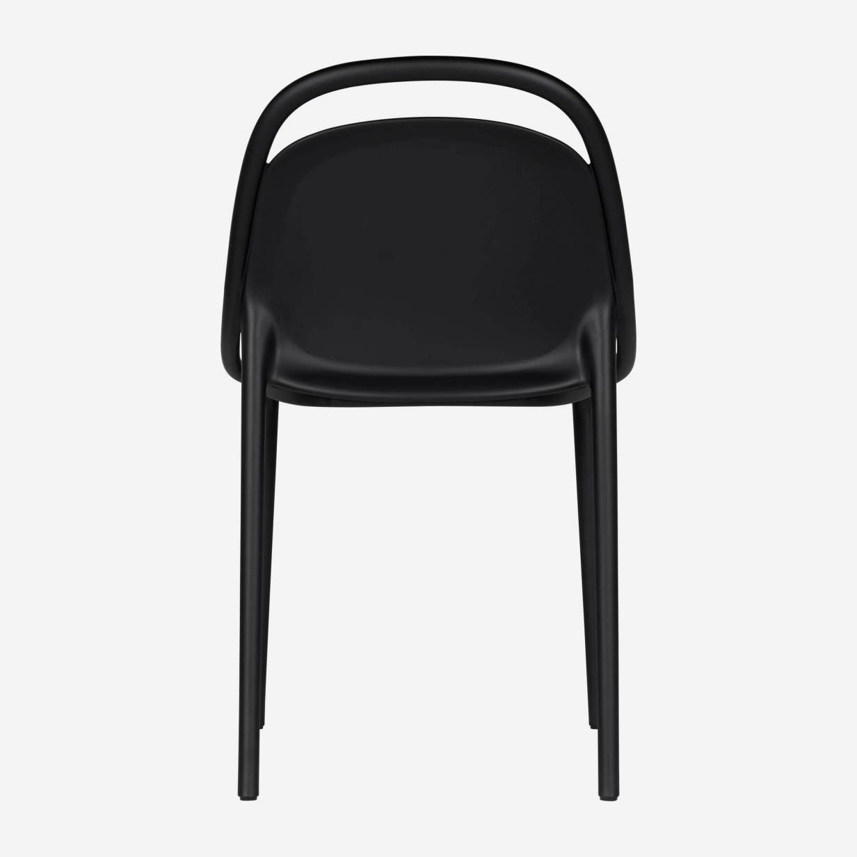 La chaise Stone de couleur noire est tout en rondeur et sensualité. Pratique, elle peut être facilement déplacée grâce à son anneau aérien placé sur le dessus. De plus, elle est facilement empilable avec ses côtés dégagés. Stone est fabriquée en polypropylène monobloc. Ce matériau a été choisi pour son élégance, sa résistance et sa légèreté.