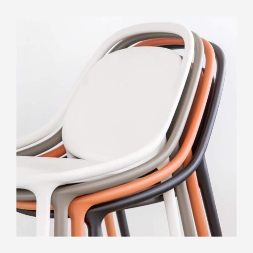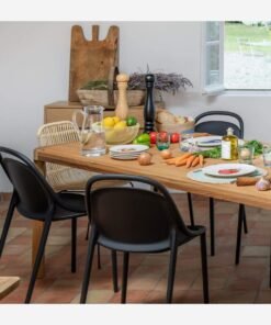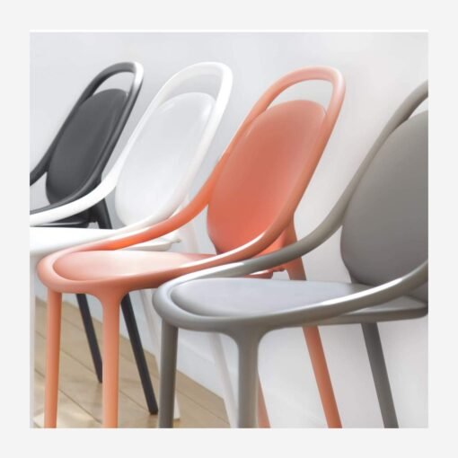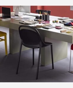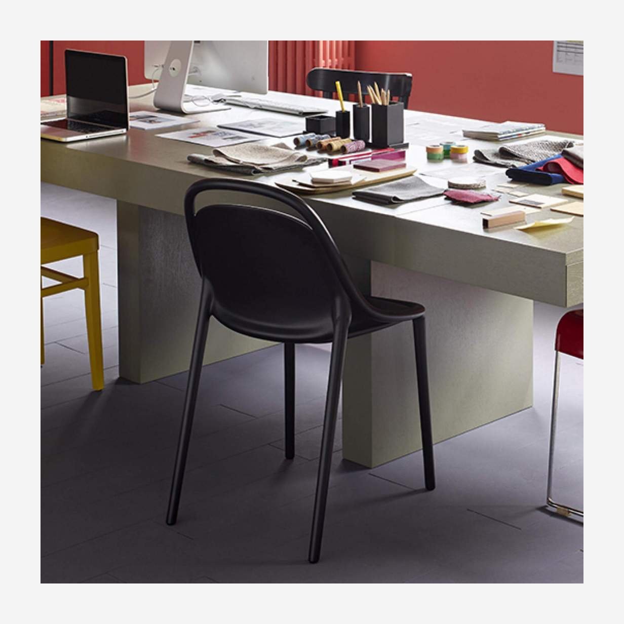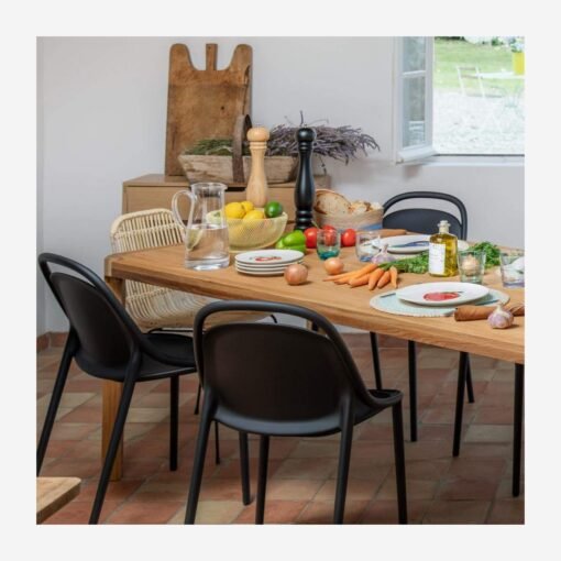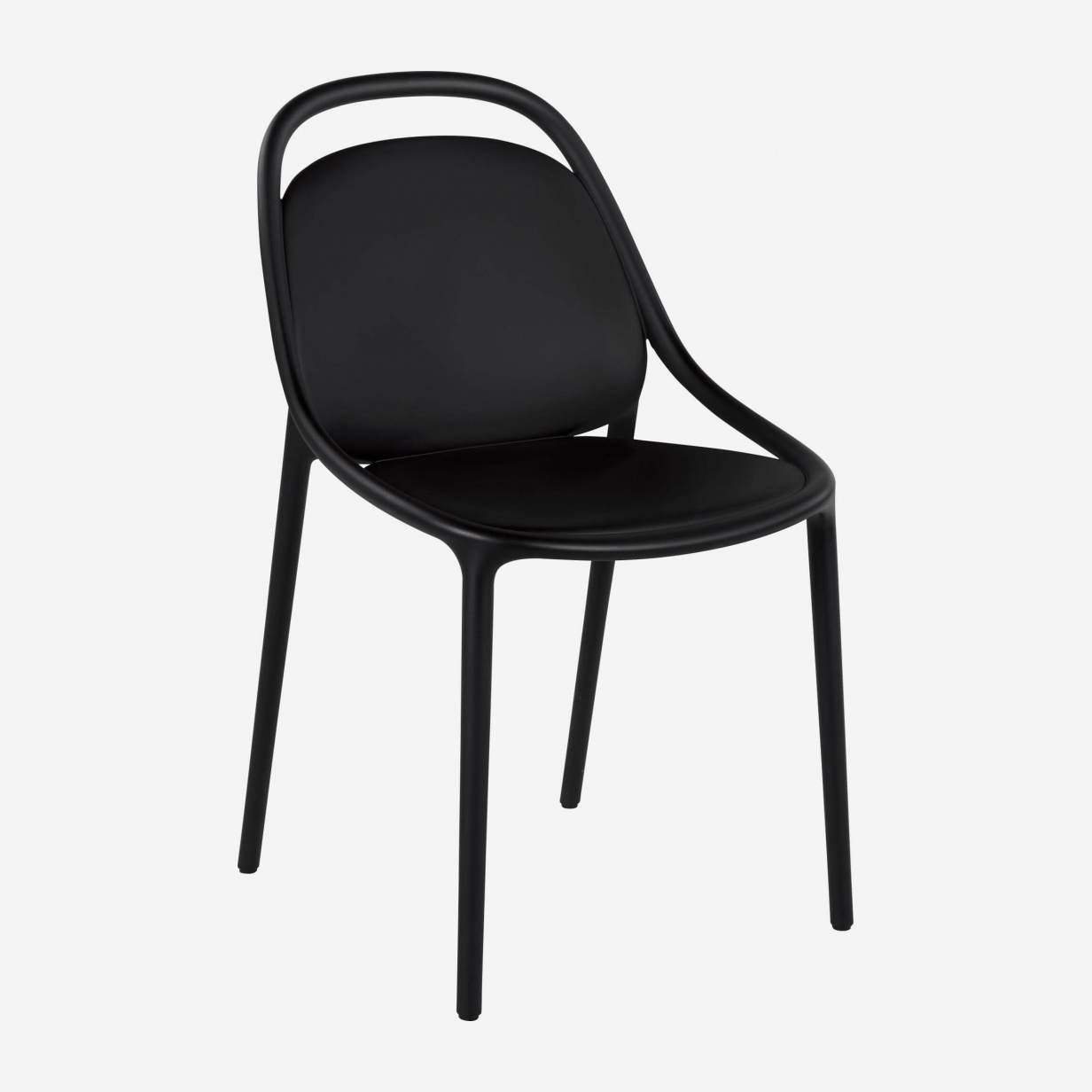 La chaise Stone de couleur noire est tout en rondeur et sensualité. Pratique, elle peut être facilement déplacée grâce à son anneau aérien placé sur le dessus. De plus, elle est facilement empilable avec ses côtés dégagés. Stone est fabriquée en polypropylène monobloc. Ce matériau a été choisi pour son élégance, sa résistance et sa légèreté.